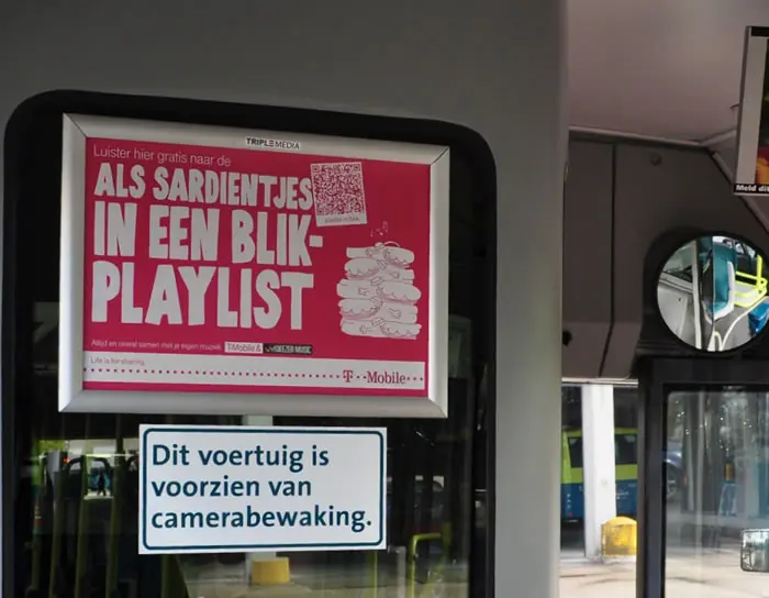 In de bussen van HTM (regio Den Haag) is deze vorm van adverteren niet meer mogelijk.